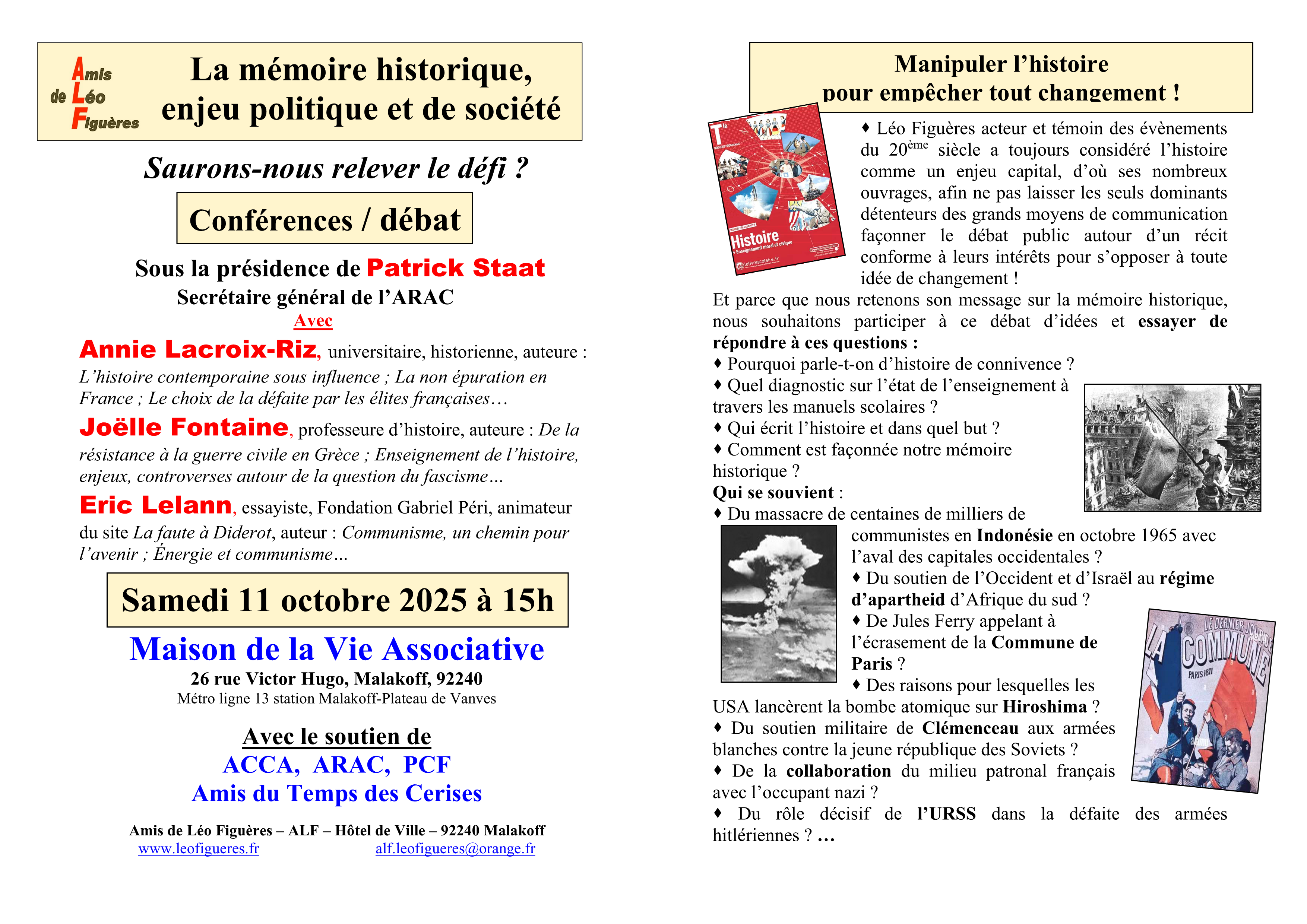 Liste de diffusion d'Annie Lacroix-Riz, pour s'inscrire, c'est ICI ( histoire.infos [arobase] gmail.com )